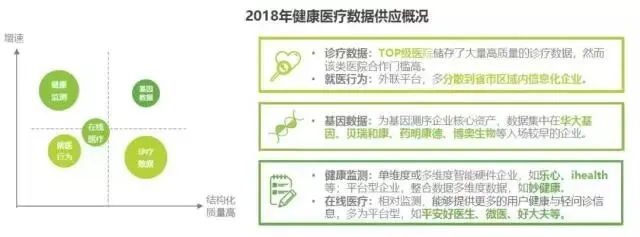 3)健康类数据多由智能硬件或在线医疗企业采集,该类数据增长快速,但是维度多且缺乏整合,质量参差不一。