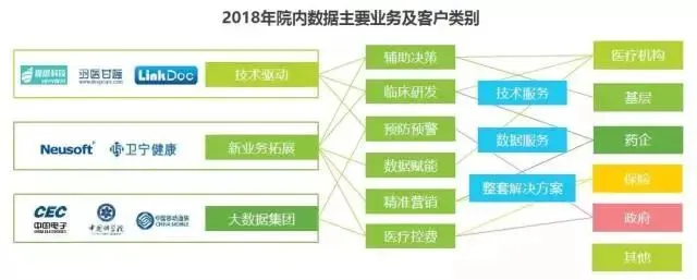 在行业发展初期,企业端客户的购买需求、支付意愿和能力远大于用户端,因此企业端客户是健康医疗大数据企业主要支付方。医院药企是最早的支付方,如湘雅,2014 年围绕数据互联互通、区域信息、精细化管理进行系统搭建。
