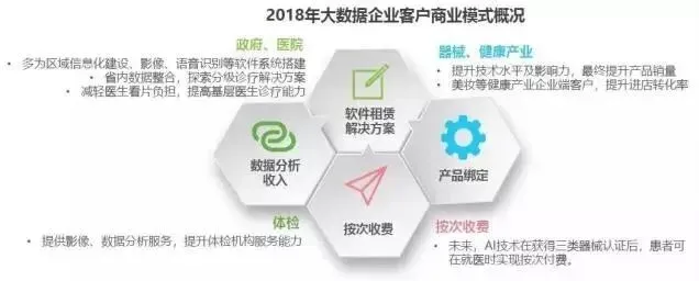 2)数据分析收入,企业为体检机构提供影像识别服务,提高影像读取效率;或利用机器学习为药企提供服务,以便提高药物发现的 “命中” 概率。