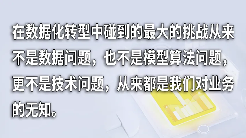 王汉生认为:“我们在数据化转型中碰到的最大的挑战从来不是数据问题,也不是模型算法问题,更不是什么技术问题,从来都是我们对业务的无知。我们不理解业务和数据之间的关系。如果我们能够建立业务问题和数据之间的关系,把业务问题规范为数据可分析的问题,就可以用众多的数据分析工具加以解决。”