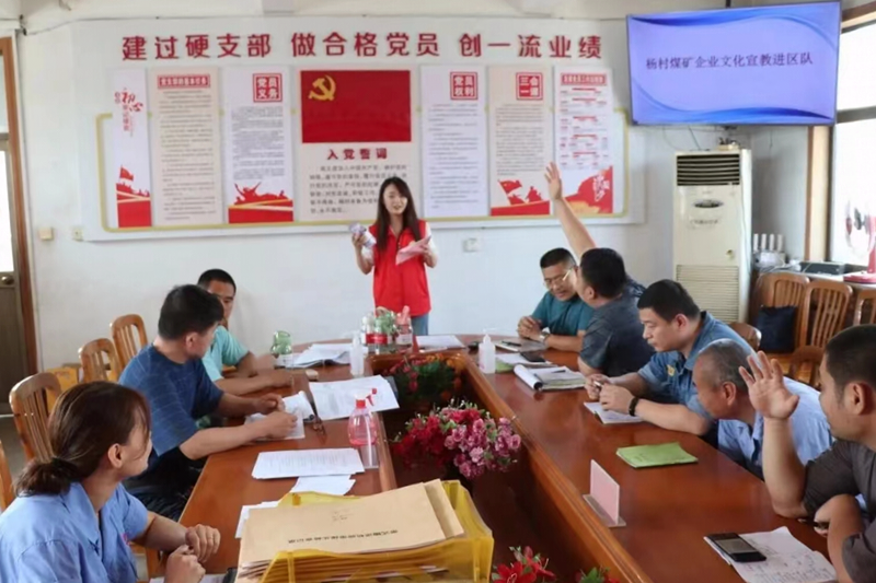 8月16日,矿第十四届企业文化周期间,矿组织“百灵”宣讲队开展企业文化进区队活动。