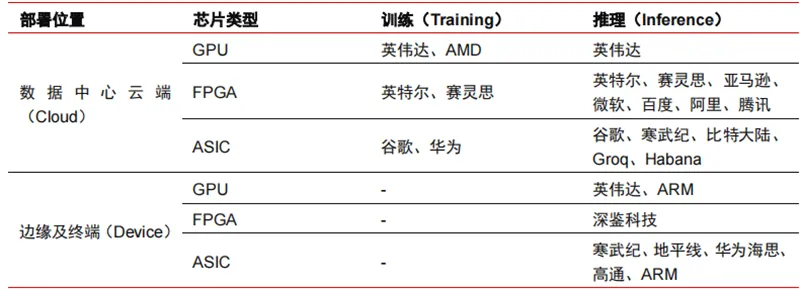 ▲芯片在不同 AI 环节的应用