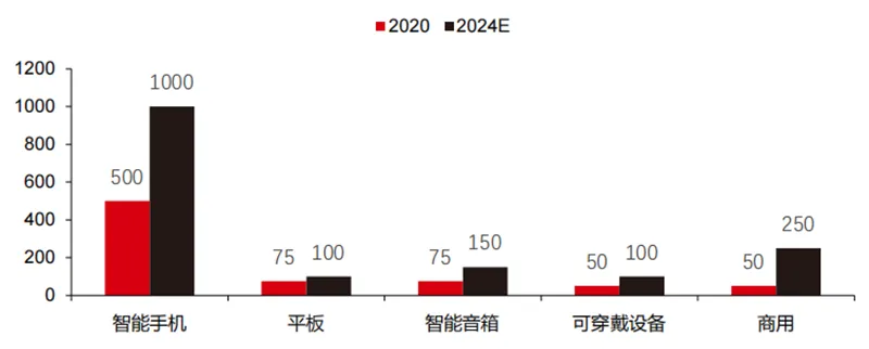 ▲边缘计算芯片出货量(百万,按终端设备)