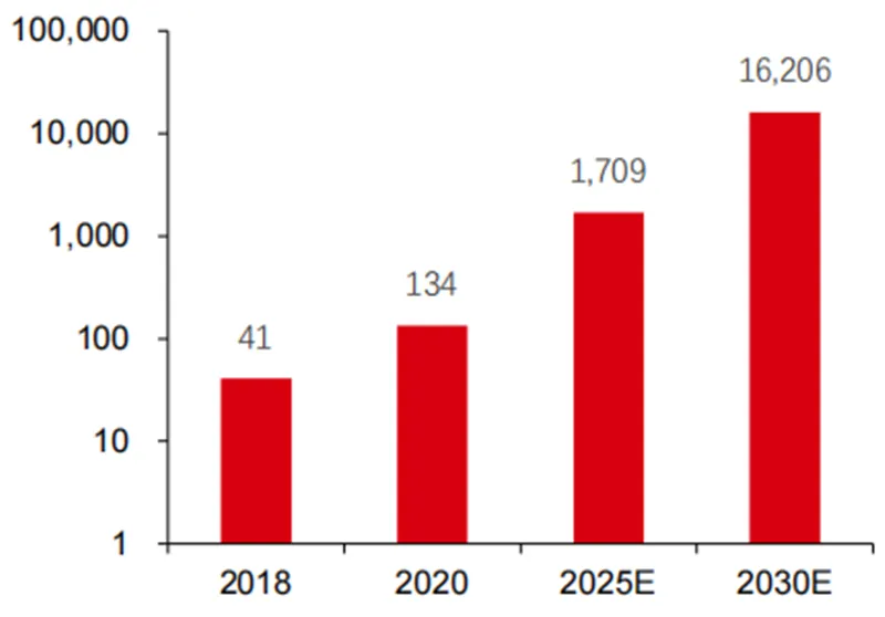 ▲预计 2030 年人工智能算力需求(EFlops)