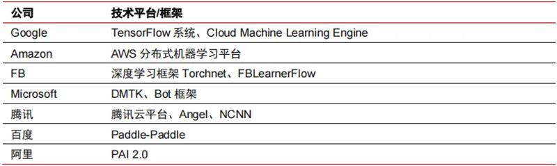 ▲主要科技巨头算法平台框架