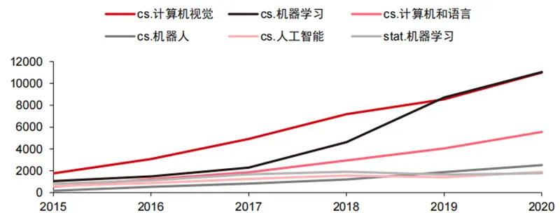 ▲2015-2020 年 ARXIV 上 AI 相关出版物数量