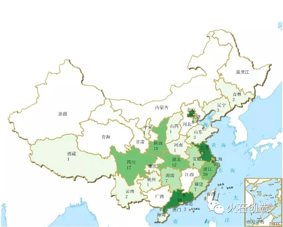 2017年中国医疗健康行业融资案例发生地区分布情况