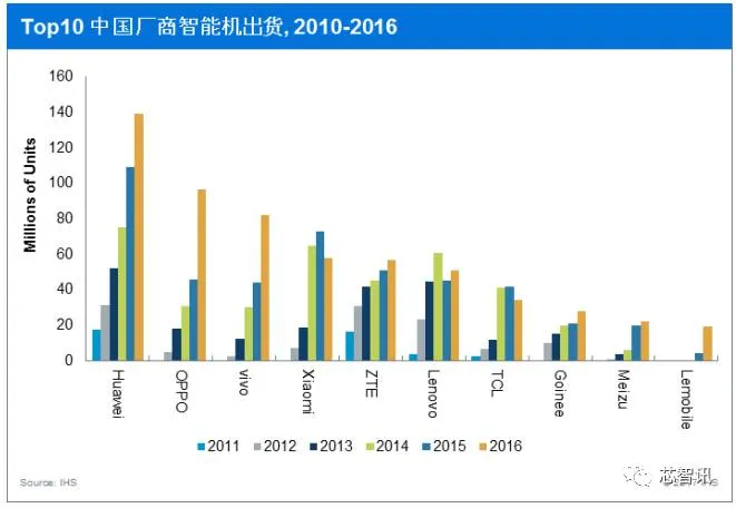 部, 海外市场出货量同样增长迅速。联想、小米、金立和中兴在海外市场出货量保持稳定增长,其产品主要集中在中低端机型,ODM公司也同样是主要的受益者。