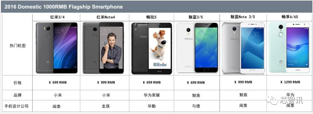 为畅享6/6s, 联想乐檬/Kraft系列,魅族魅蓝Note3/5系列以及中国移动A系列和N系列,出货量均为百万部以上,其中红米、魅蓝Note和畅享系列出货量均在千万部级别。