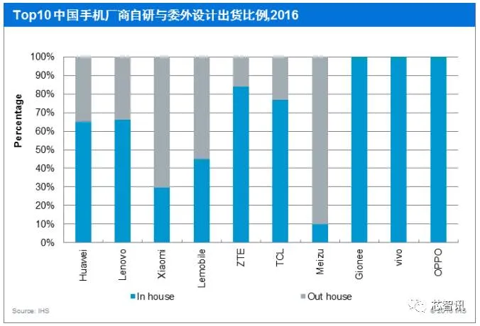 根据手机厂商品牌定位以及产品策略的考量,手机OEM在产品委外策略上差异很大。千元智能机市场,手机设计公司(IDH/ODM)在2016年继续扮演着非常关键的角色,在成本管控/研发效率方面,ODM公司拥有绝对的优势,且随着ODM公司供应链和品质管理能力的升级,目前TOP5 ODM公司已经可以提供从研发设计,供应链管控以及生产制造等环节的完整方案。
