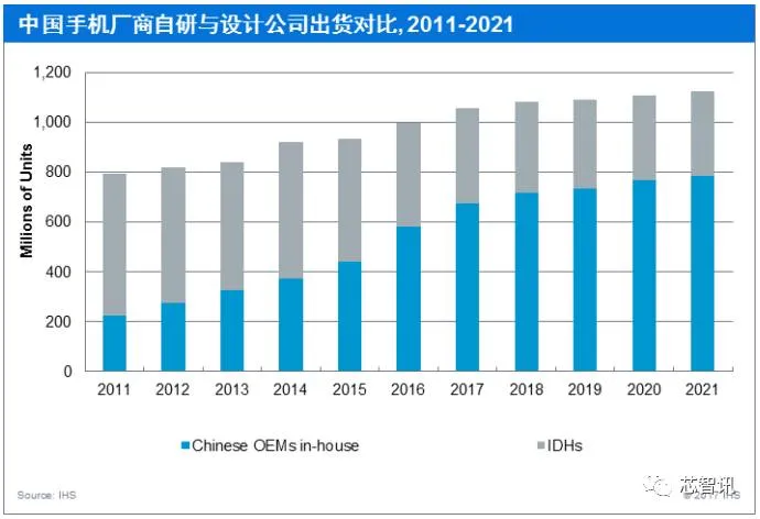 中国手机市场4G智能机从2013年开始起步,由于运营商补贴开始逐步减少,运营商渠道智能机销量占比开始下滑,华为、OPPO、vivo和小米开始借助于公开市场渠道开始迅速增长。其中千元智能机市场则长期是出货的主力,截至2016年,千元智能机出货比例均在50%以上,其主要出货集中在华为、小米、联想和魅族等手机品牌,其产品研发设计主要通过与闻泰、华勤、与德和龙旗等ODM公司合作。