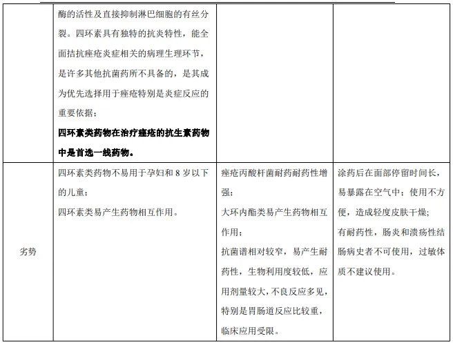 抗痤疮丙酸杆菌对抗菌药物的耐药性发生率,由高到低:大环内酯类药物>克林霉素>四环素类药物。