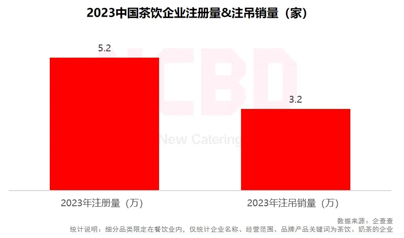 5、2023年,茶饮企业成立数量为5.2万家,注吊销3.2万家;喜茶、霸王茶姬等品牌门店数量激增,在一些下沉市场开展了激烈的竞争,而一些小品牌压力陡增。