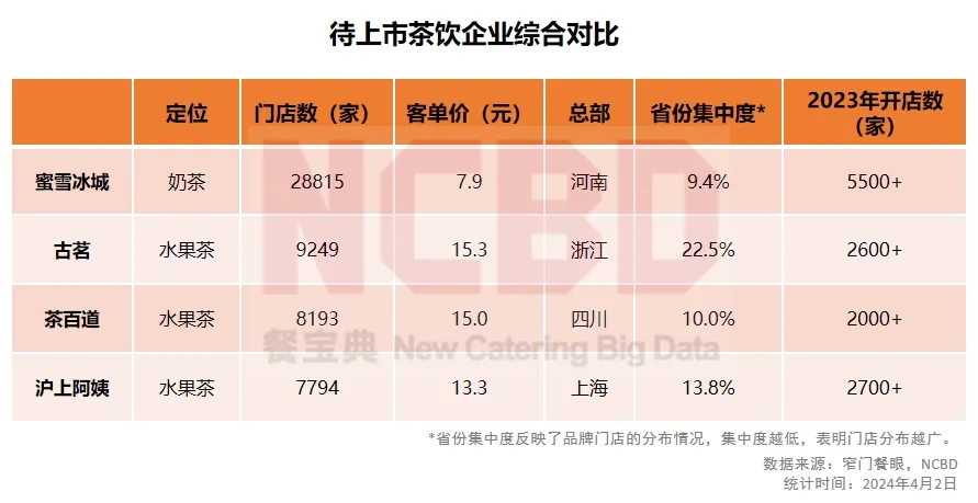 截至目前,茶百道、蜜雪冰城、古茗以及沪上阿姨均已经提交了招股书。2024年3月,茶百道正式通过港交所上市聆讯,有望成为“茶饮第二股”。此外,霸王茶姬近日再次传出赴美上市消息,茶颜悦色也多次传出即将赴港IPO。餐宝典分析师认为,茶饮行业竞争异常激烈,现在是茶饮企业上市的最佳窗口期。未来茶饮将超越卤味熟食,成为餐饮行业上市公司最多的品类。