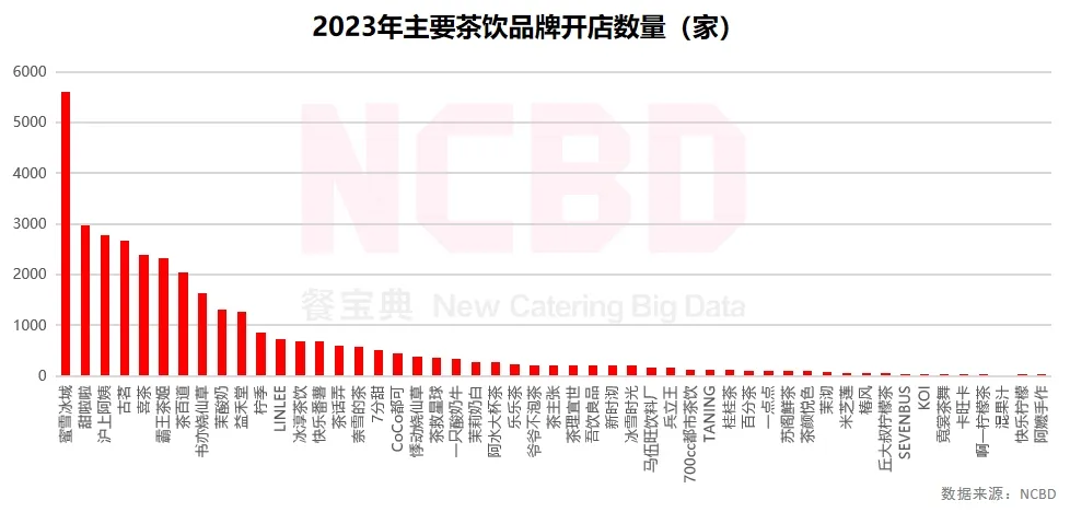 11、2023年,开店最多的五个品牌依次是:蜜雪冰城、甜啦啦、沪上阿姨、古茗以及喜茶;霸王茶姬紧随其后,势头较猛。