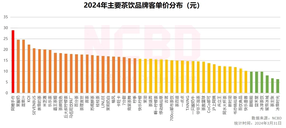 12、从主要品牌的客单价来看,绝大多数茶饮品牌的客单价在10—25元之间,是当前的主流;在第一梯队(客单价在30元附近)中,比较知名的品牌为阿嬷手作;在第二梯队(客单价在16—25元)中,茉酸奶、混果汁价格较高。