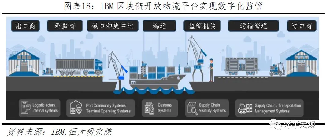 区块链去中心化、可追溯、信息对称、安全可视等特点天然的适用于全球贸易的物流环节,以IBM区块链开放物流平台为例。