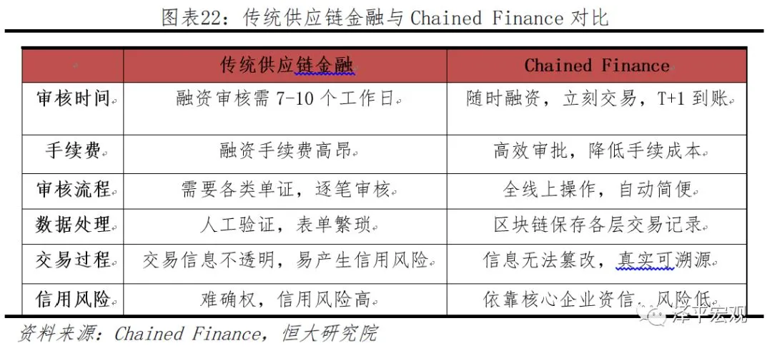 对于供应链上的中小企业而言,传统模式下融资成本高达25%以上,而在Chained Finance平台下可以核心企业资信的应收账款融资,融资成本可以降低至10%以下。