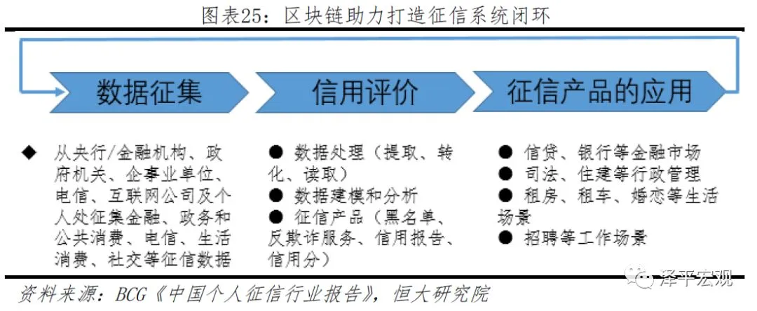 通过系统各节点的信息共享,区块链可以构建一个完整的“信用分评价体系”,根据个人行为对信用的影响程度高低(例如信贷数据影响较高、非信贷数据影响较低)来评估个人的整体信用水平,并根据联盟机构对信用评价的贡献分配信用使用方查询数据产生的收益,解决“信息孤岛”问题。