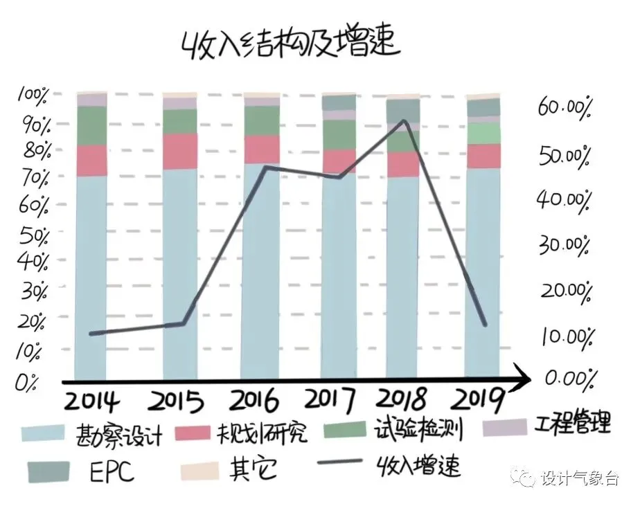 去上游的咨询设计类公司可以做勘察设计,比如说前期的工程勘察、初步设计、施工图设计等。据调查,在2018年,全国工程勘察设计企业营业收入总计5.19万亿元,同比增长19.65%。