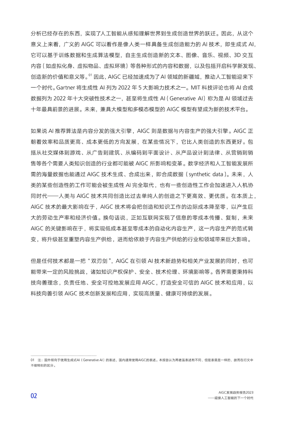 (完整版.pdf ) 以下仅展示部分内容 O后台回复“202401282”就可以获取《AIGC发展趋势报告2023》(完整版)的全文下载链接。