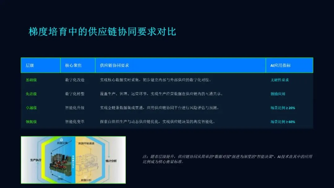 ·构建梯度培育体系:通过基础级、先进级、卓越级、领航级四个层级的分类指导,引导企业循序渐进提升智能化水平。