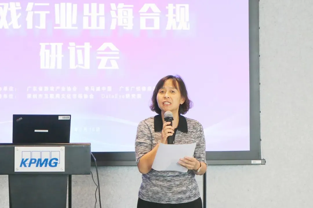 广东省游戏产业协会执行会长鲁晓昆女士发表致辞,她提到,近年来,游戏“出海”已成为广大游戏企业的战略选择。游戏出海整体形势较好,但全球化的市场环境使的出海产品面临着严峻的挑战。希望通过本次活动,能有效帮助游戏企业规避出海风险,提升产品出海的成功率,共同推动游戏产业健康、繁荣发展!