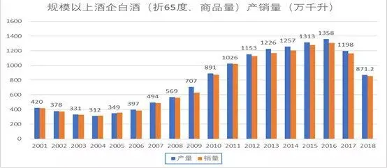 (备注:根据国家统计局数据,2018 年全国规模以上白酒企业完成酿酒总产量 871.2 万千升,同比增长 3.14%;累计完成销售收入 5363.83 亿元,同比增长 12.88%;累计实现利润总额 1250.5 亿元,同比增长 29.98%。)