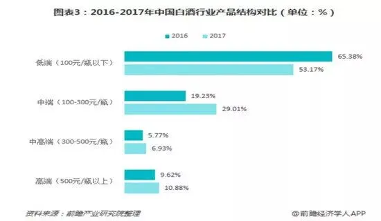 (3)中国白酒的消费结构升级,中端以上的白酒需求量大幅提高。