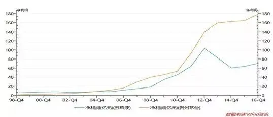 茅台上市之前,五粮液在A股白酒行业享受了三年无与争锋的好日子,1998年五粮液的营业收入和净利润都是茅台的四倍以上。