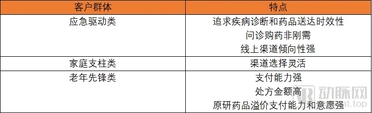第一类是“应急驱动”客群,疾病多为“突发+轻症”,对疾病的诊断和药品送达的时效性要求较高,但问诊购药非刚需,线上问诊购药的倾向性更强;