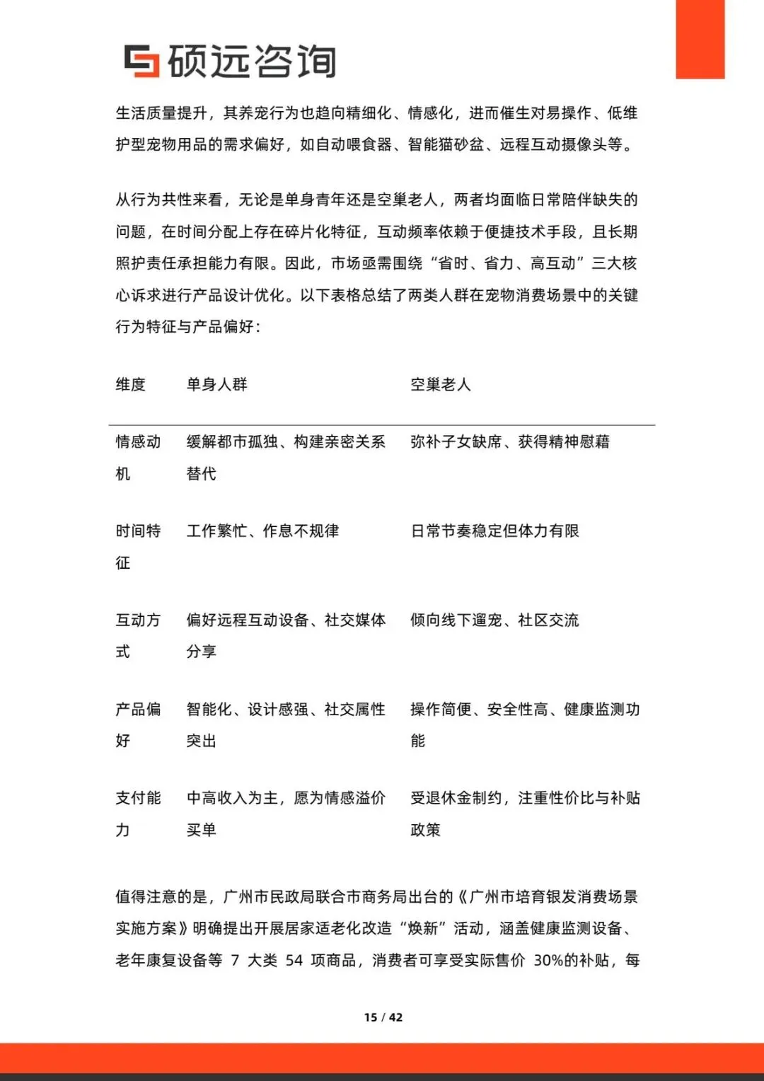 人群画像: 90后占比41.2%,00后占比25.6%,合计超66%的年轻群体成为养宠核心力量。 情感消费:超70%宠主视宠物为"家人",愿为情感溢价买单,主粮复购率超80%。 消费偏好: 智能化用品:自动喂食器、智能项圈渗透率提升15%,满足远程看护与健康监测需求。 功能型食品:含护关节、促消化成分的主粮销售额年增25%,定制化膳食服务兴起。