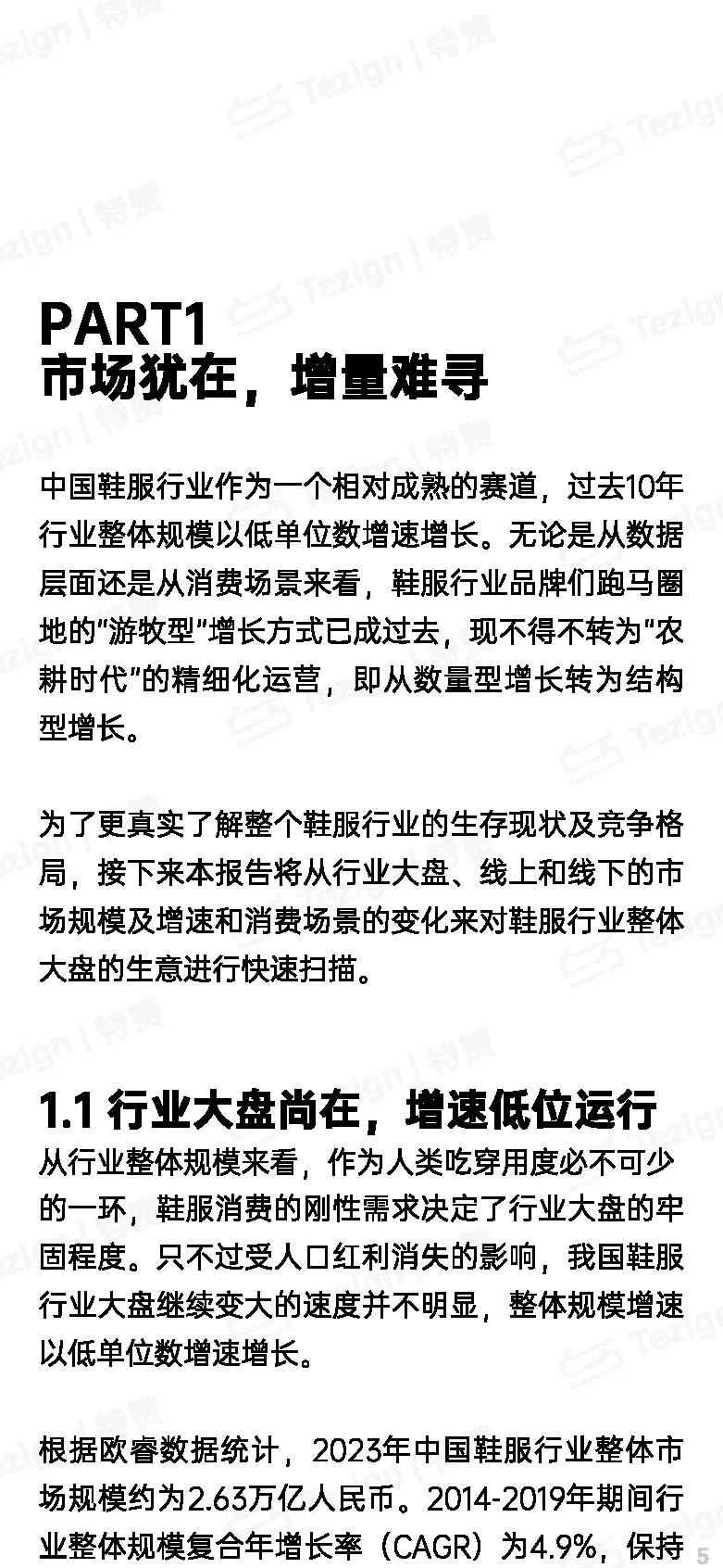 摘要:报告显示,中国鞋服行业在过去十年间,整体规模虽保持着低单位数的增速,但曾经依赖人口红利和流量爆发所带来的游牧型增长模式已无法延续。根数据显示,2023年中国鞋服行业总规模达到了2.63万亿元人民币,但受人口红利消减影响,整体增速已步入低位运行阶段。