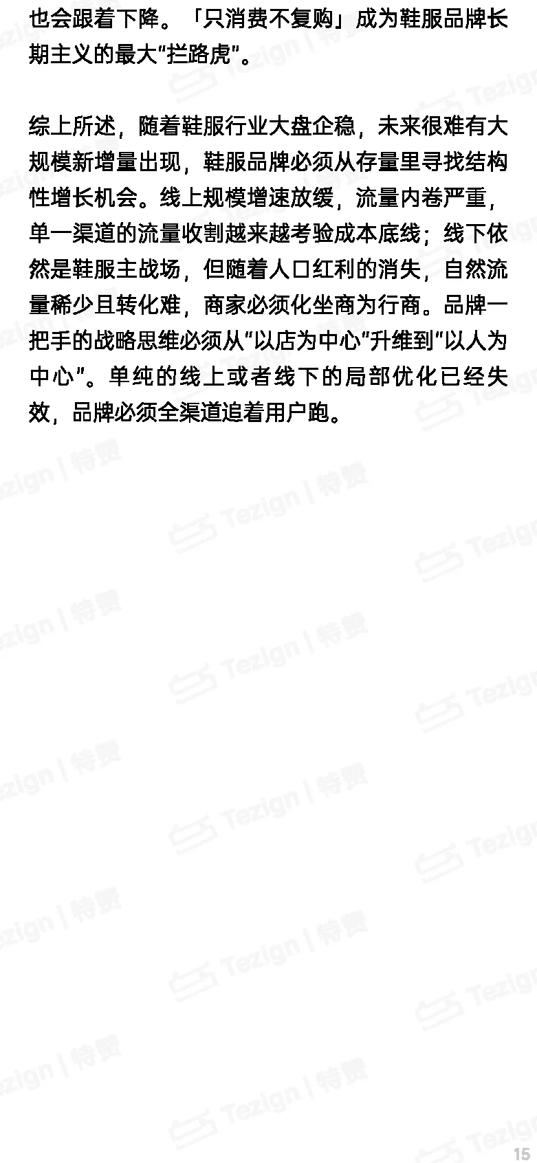 报告认为,在人口红利消退、线上流量增速放缓、线下实体店客流流失严重的背景下,鞋服品牌急需转变原有的粗放式增长模式,转而采取精细化运营和深度用户经营。