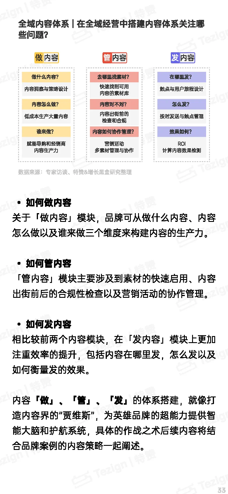品牌需要在做内容、管内容和发内容三个维度上下功夫,提升内容质量和触达效率,充分利用内容产生的复利效应,推动品牌的全域经营。具体做法包括内容的生产、内容的管理和合规,以及内容的有效分发。