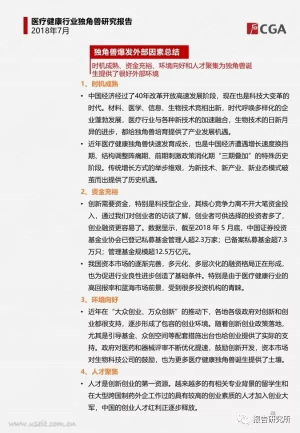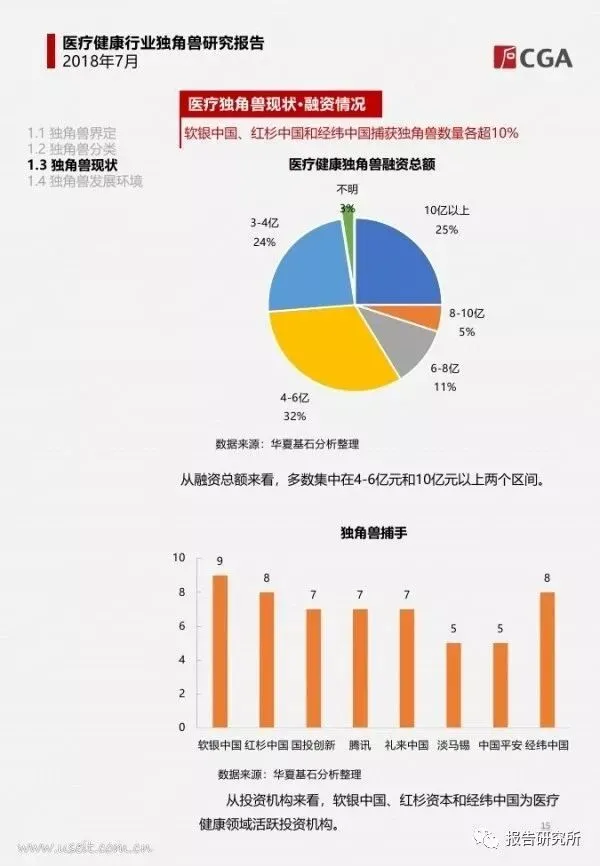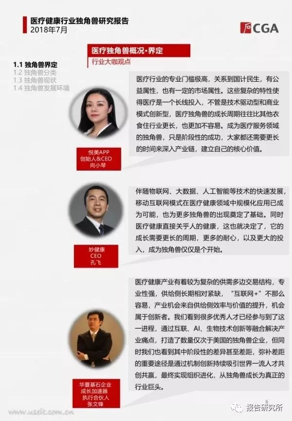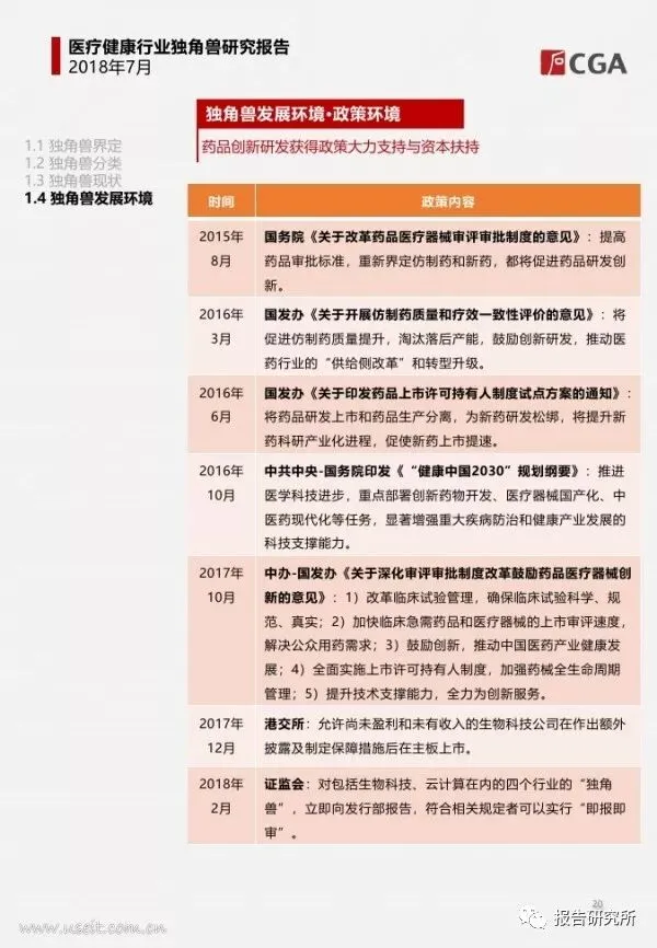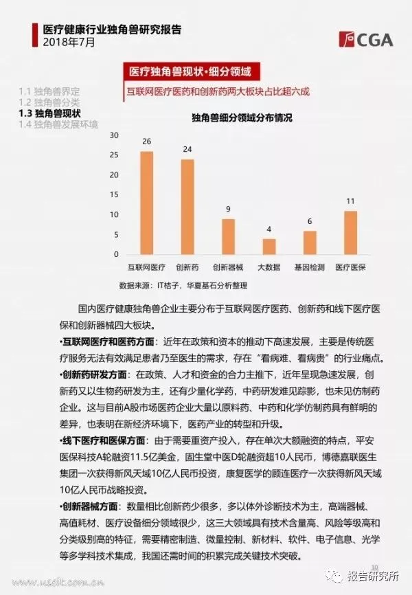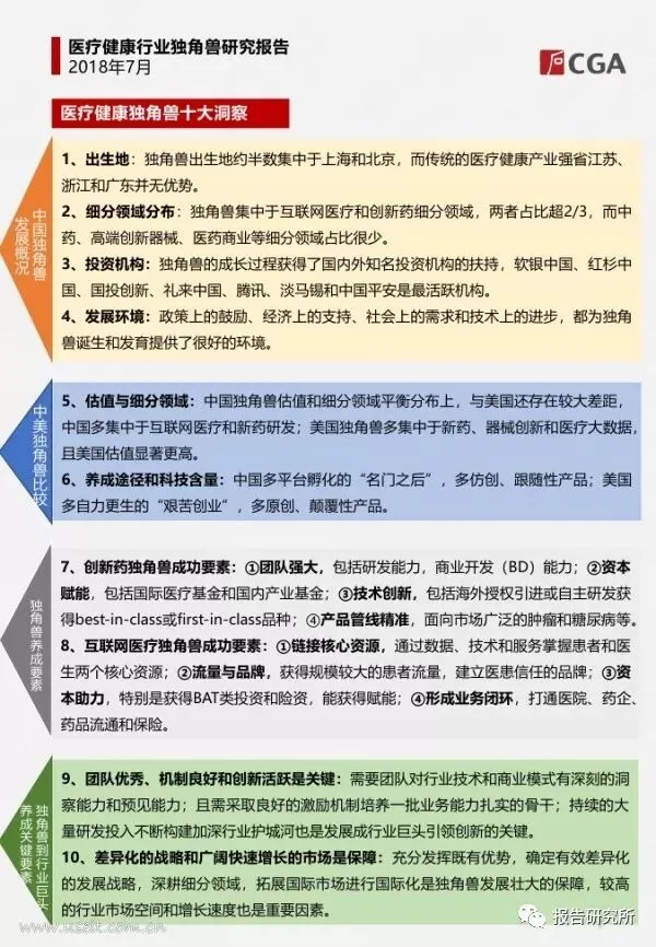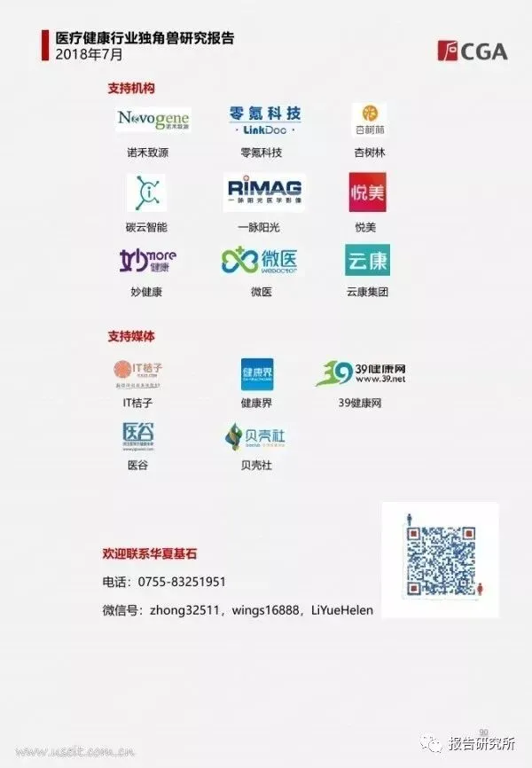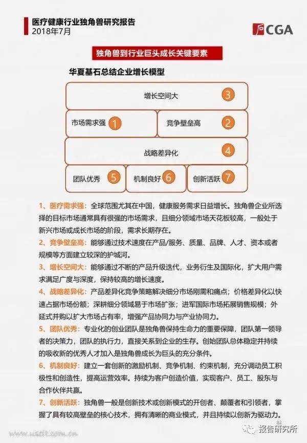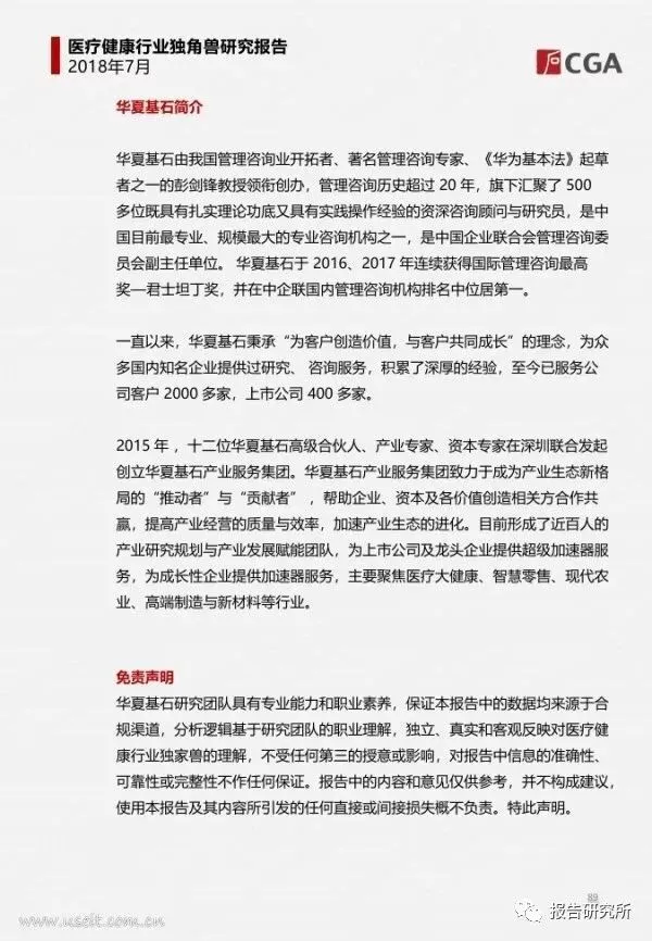 华夏基石《2018医疗健康行业独角兽深度研究报告》要点: