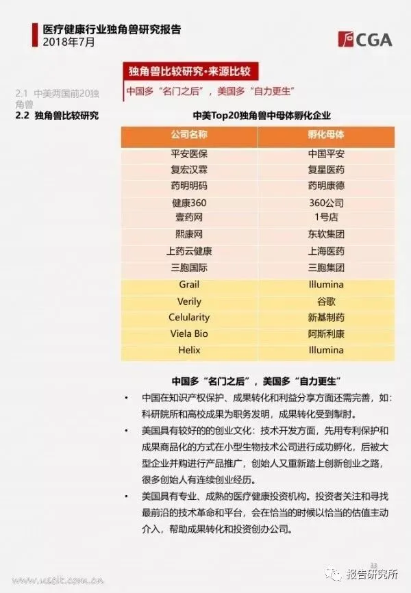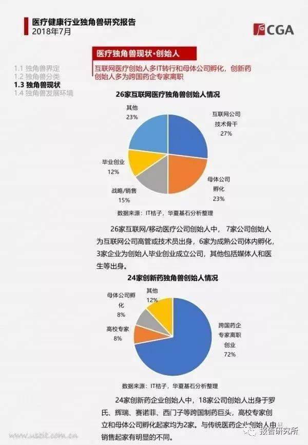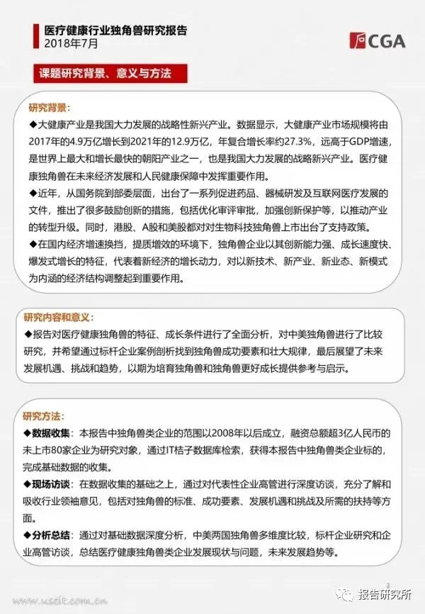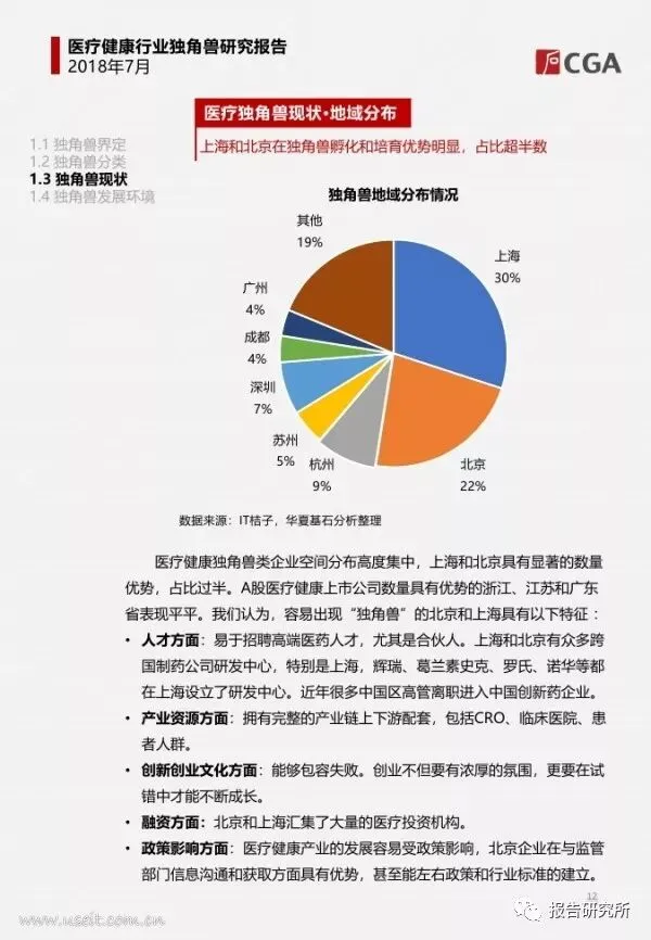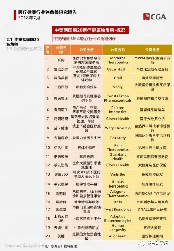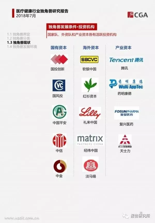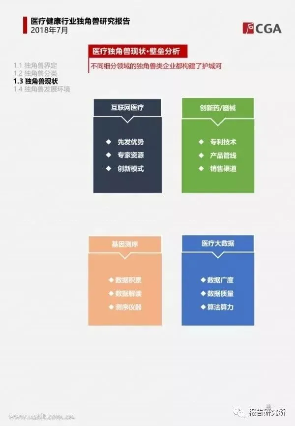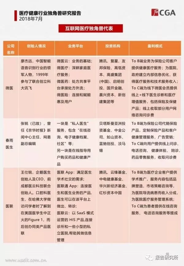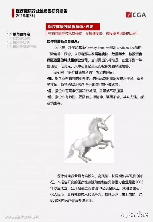 华夏基石《2018医疗健康行业独角兽深度研究报告》要点: