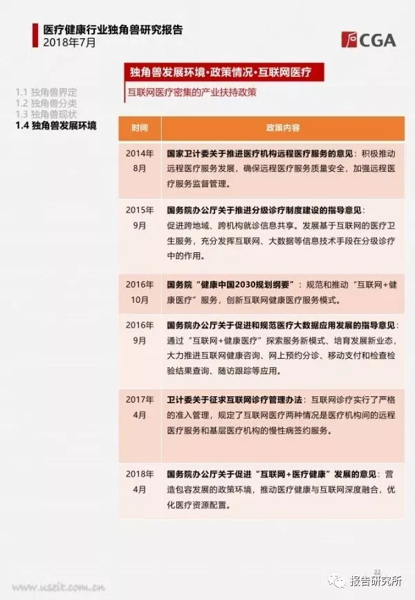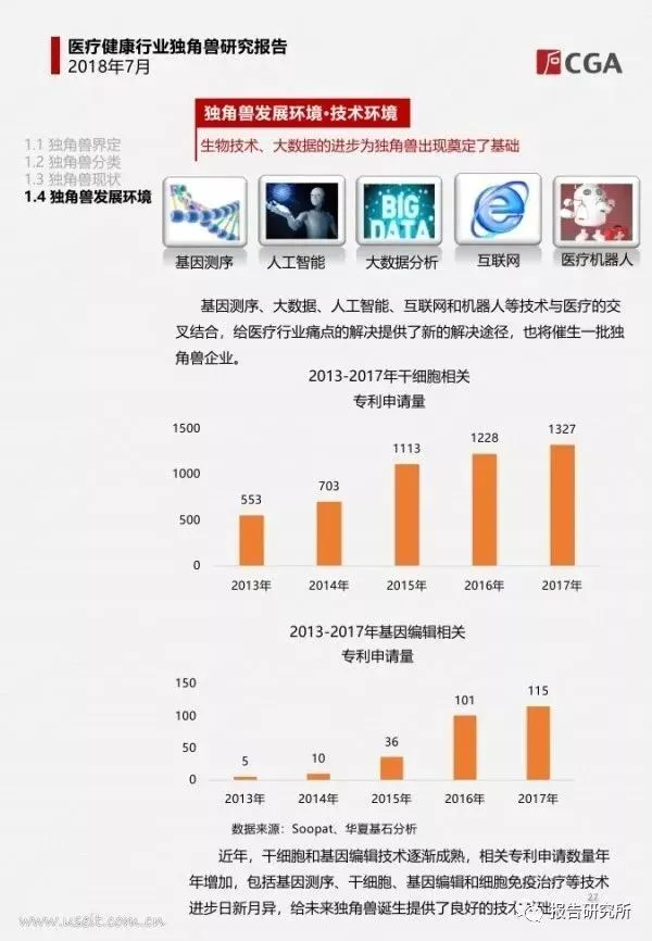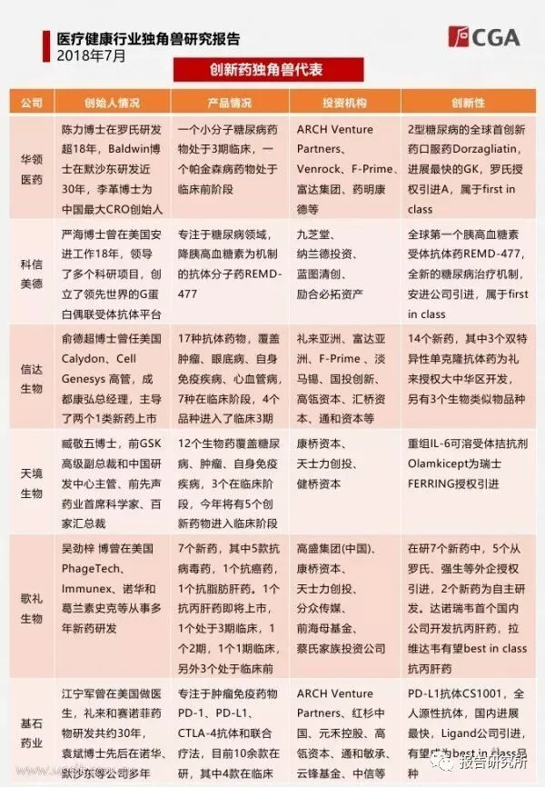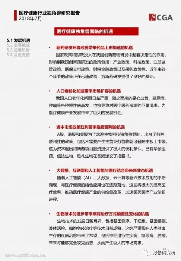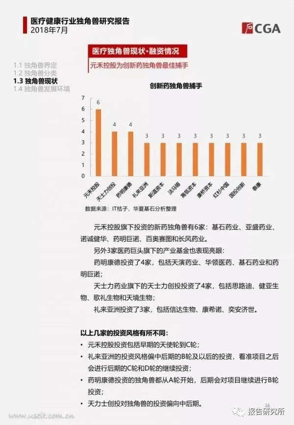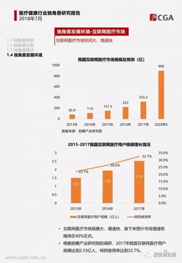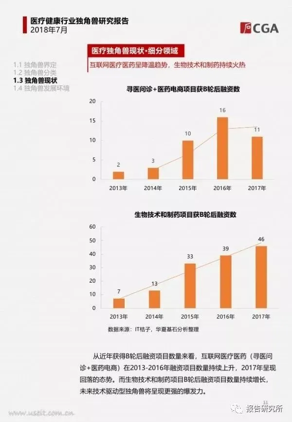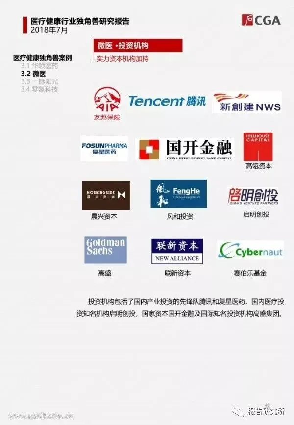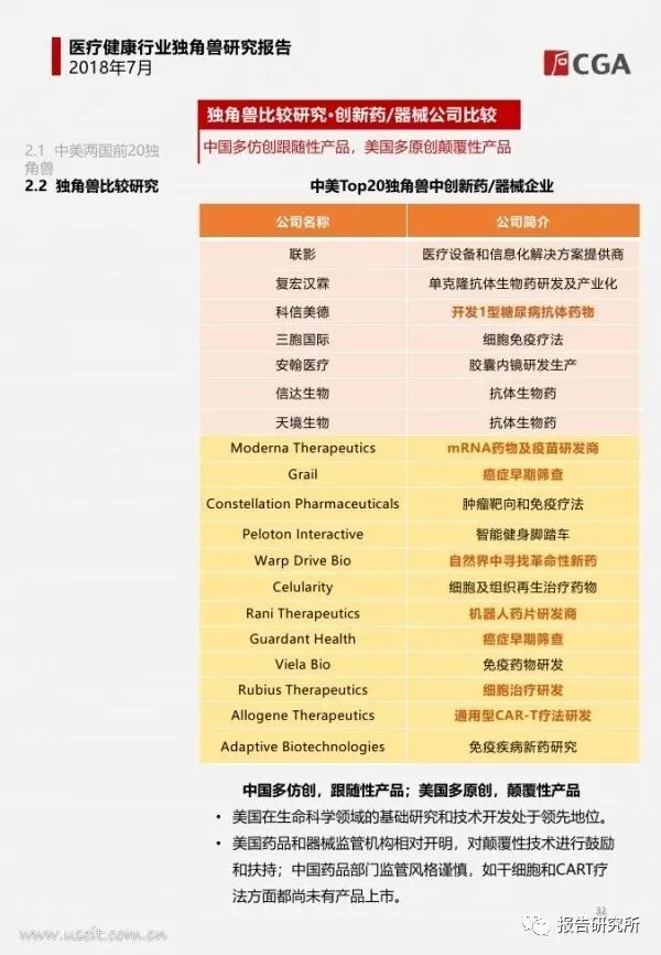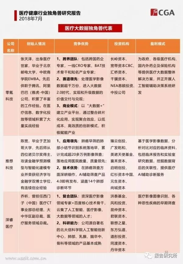 华夏基石《2018医疗健康行业独角兽深度研究报告》要点: