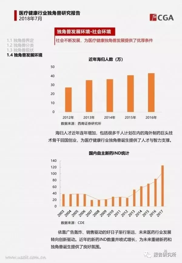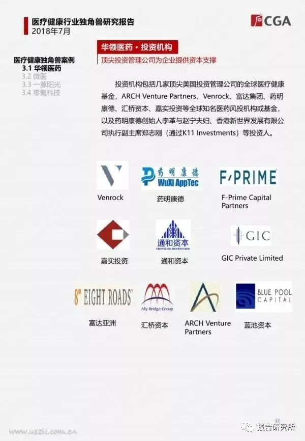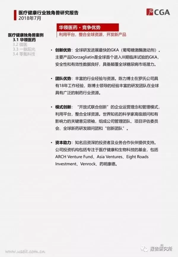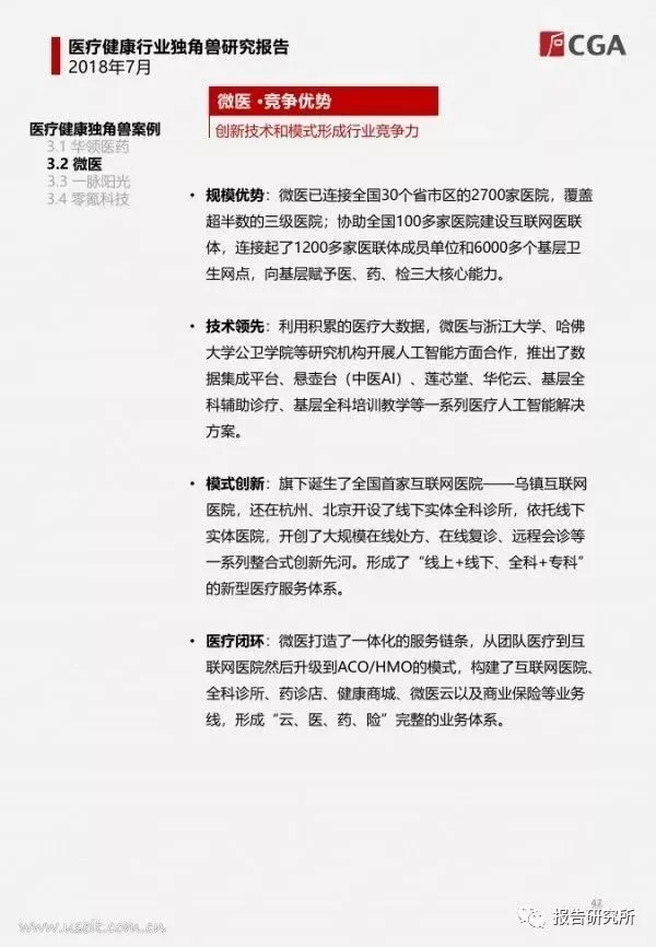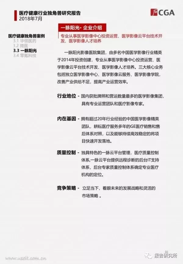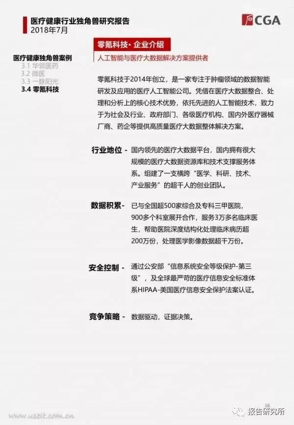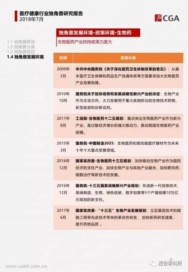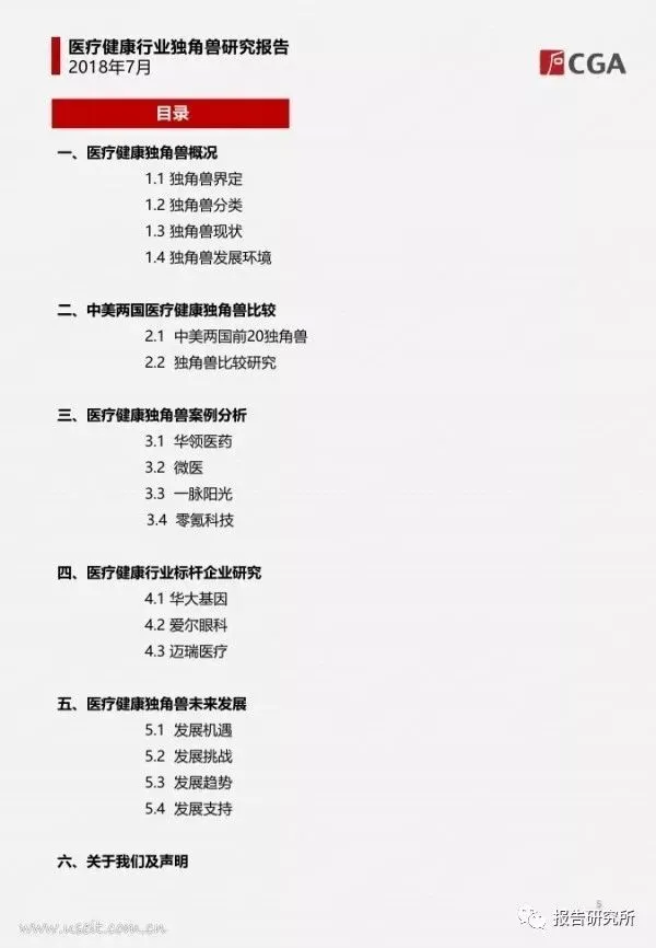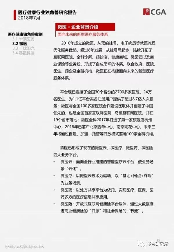 华夏基石《2018医疗健康行业独角兽深度研究报告》要点: