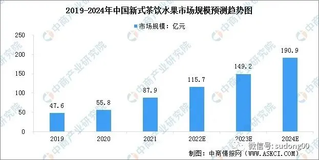 预计2024年国内新式茶饮水果的市场规模将达到190.9亿元。