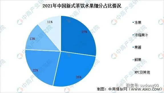 随着消费者对健康重视程度的不断加深,新茶饮中将更多的使用鲜果、冻果等作为原材料,未来传统的浓缩果汁、果酱的使用占比将减少。