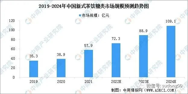 预计2024年新式茶饮糖类市场规模将达到109.1亿元。