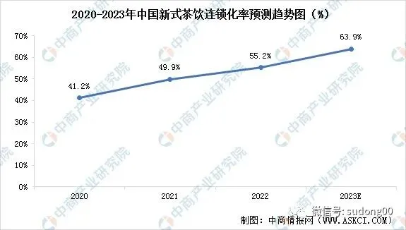 2023年中国新茶饮的连锁化率将增长至63.9%。