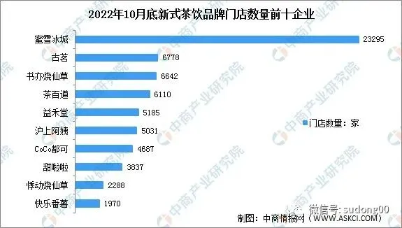 在2022年10月底,30家典型新茶饮品牌门店数排在前十的品牌为: