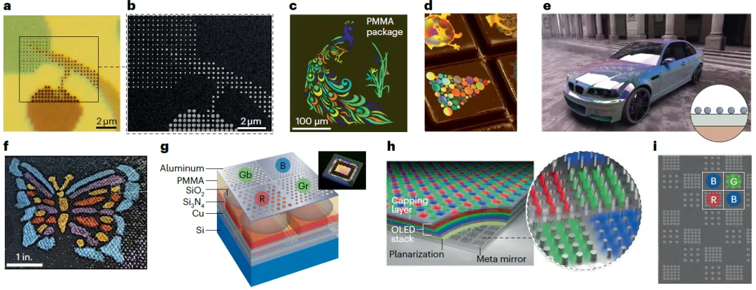 图7 | 调控结构色、光探测、光发射的超表面应用