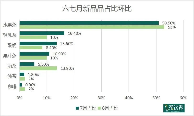 7月,品牌陆续回归青提品类,青提新品占比NO.1。