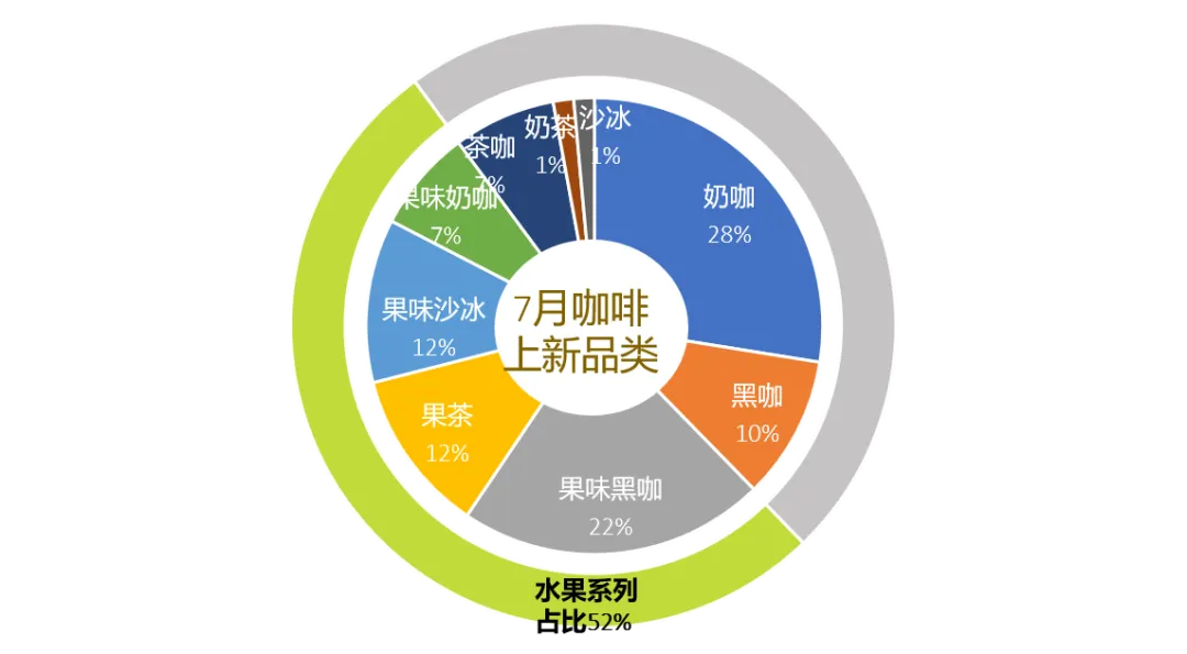 连锁咖啡品牌上新产品水果系列持续占比超过一半,果咖已经成为咖啡的常规菜单。