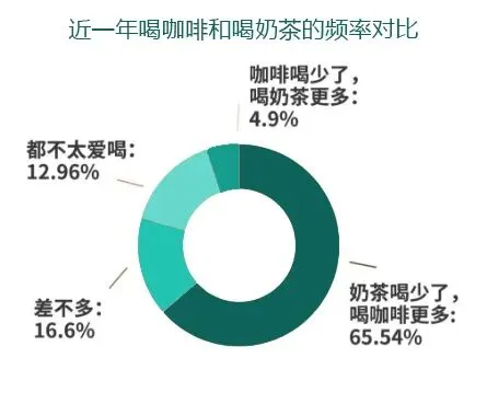 根据有意思调查7月调研结果(单选/样本量1898),更多受访者认为,奶茶喝少了,喝咖啡更多了。
