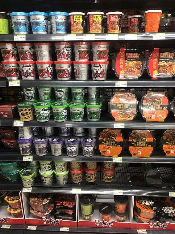 在调研中有一个非常有意思的现象,当我们搜索“酸辣粉”“方便面”“螺蛳粉”等速食产品时,会发现他们在电商页面上通过图片或者视频地去大面积地呈现实物的食欲图片,但在线下他们完全不在乎包装是否能激起消费者的食欲。