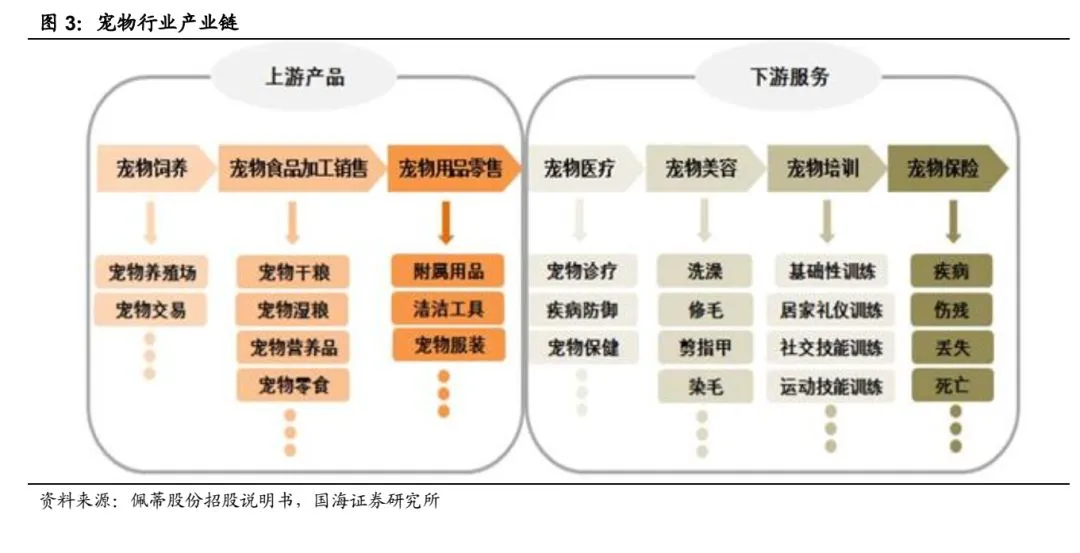 宠物行业涵盖范围广,涉及衣食住行方方面面。